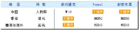 支援對不同地區最方便的支付方法,以下的表格列出每個地區支援的支付貨幣,支付方法和最低支付金額: